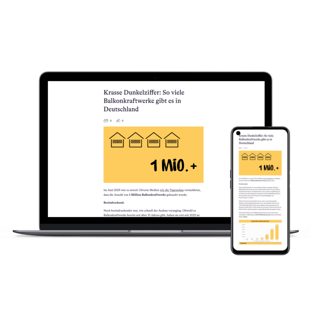 Der Balkonkraftwerk-Newsletter für Macher und PV-Guerilleros. Hier gibt es News für alle, Ratgeber für Einsteiger und Hacks für Pros.